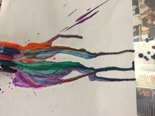 I notice how quickly the crayon dries back after you turn off the blow dryer. I really do like the method and this process. I realize that you have to turn the gun on an angle to really get the crayons dripping. I probably will also place my canvas on an angle for better position. I believe that I will hold the board long ways to get a better flowing picture.
