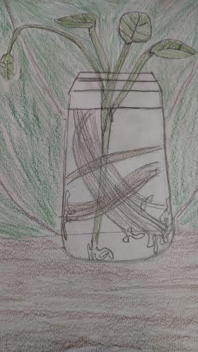 My project is a still life of a plant in a jar. What knowledge did you already have about the project before you started?I did a still life in your class last year. What new skill did you want to learn coming into the project?I wanted to learn how to observe more things and sketch them better. Did you accomplish this goal? I feel like i did and didn’t accomplish the goal. I observed and sketched the plant but the background takes away from that. How do you know you accomplished the goal? If you didn’t accomplish the goal, why do you think that is?I know I accomplished this goal because I sketched the plant to my standards, but i wanted that to be the main focus instead of the background. What other skill(s) did you learn along the way? Another skill I learned along the way is how to use size efficiency at it’s best. It sounds stupid, but i usually do everything the same way and I don’t change things that often. So I experimented with size ratios to see which I liked the best. The thing I’m most proud of for the project is my ability to change the sketch this over time the plant started to die so i had to change certain details. What would you do differently if you had to do the project over again?I would change the shade of the plant to make it bolder.