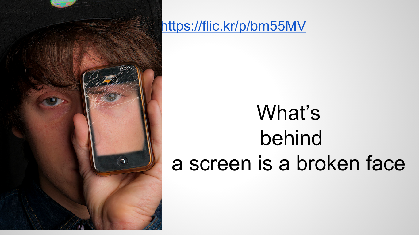 My post shows how cyberbullying affects the people outside the screen. It like a shattered screen once its cracked you can put the pieces back together, but it will never be perfect. We should think about the person who is behind the screen and say to ourselves "how would the person feel and would I feel if someone said this to me"?. Cyberbullying can cause devastation to the bullier's life and that can cause depression and suicide. All of this can be avoided if we all just say "if it isn't kind to say DON'T SAY IT"