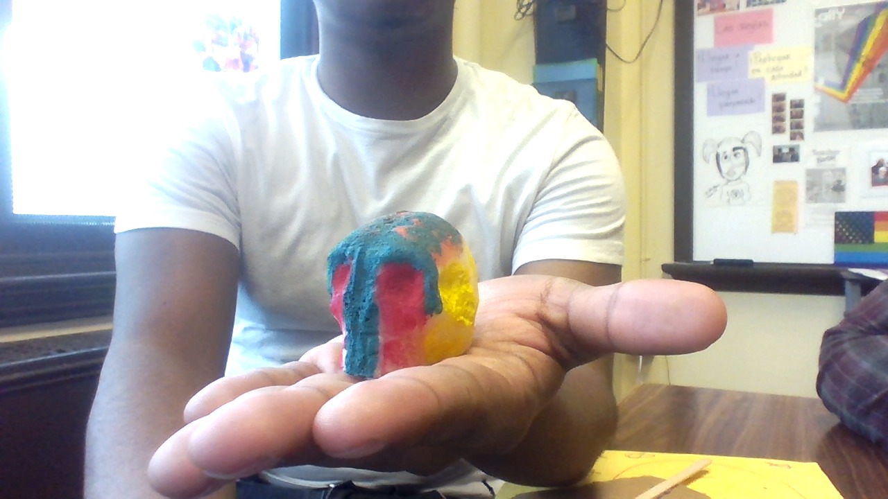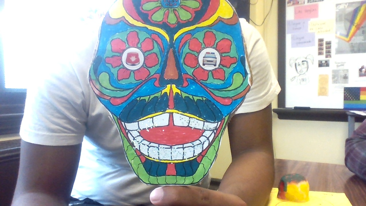 Hello my name is kahsir and today I’m gonna talk about somebody that meant a lot to me. first I would like to say we were not related but he was so close to my family he was called our cousin. Dave is from Philadelphia and I believe he has lived here his whole life. He was our neighbor that is how my family became so close to him. I hung out with younger brother a lot that is how I knew Dave. I would describe him as funny, intelligent, and artistic. Dave meant a lot to me and my family, I looked up towards him as a role model. He was a big part of our lives and now that he is not here it feels weird. I decided to make a sugar skull dedicated to him because he is the only person I really knew who died. Growing up I was not that close with my real family so dave was the only choice I saw. I did not know his favorite colors so I just used the brightest colors I saw. My sugar skull is bright and vibrant and that is how I saw him, a bold person who stood out. Días de los muertos has helped me remember him more vivid like he was here just yesterday. If I celebrate Días de los muertos I believe I would remember dave like he is still here for the rest of my life.