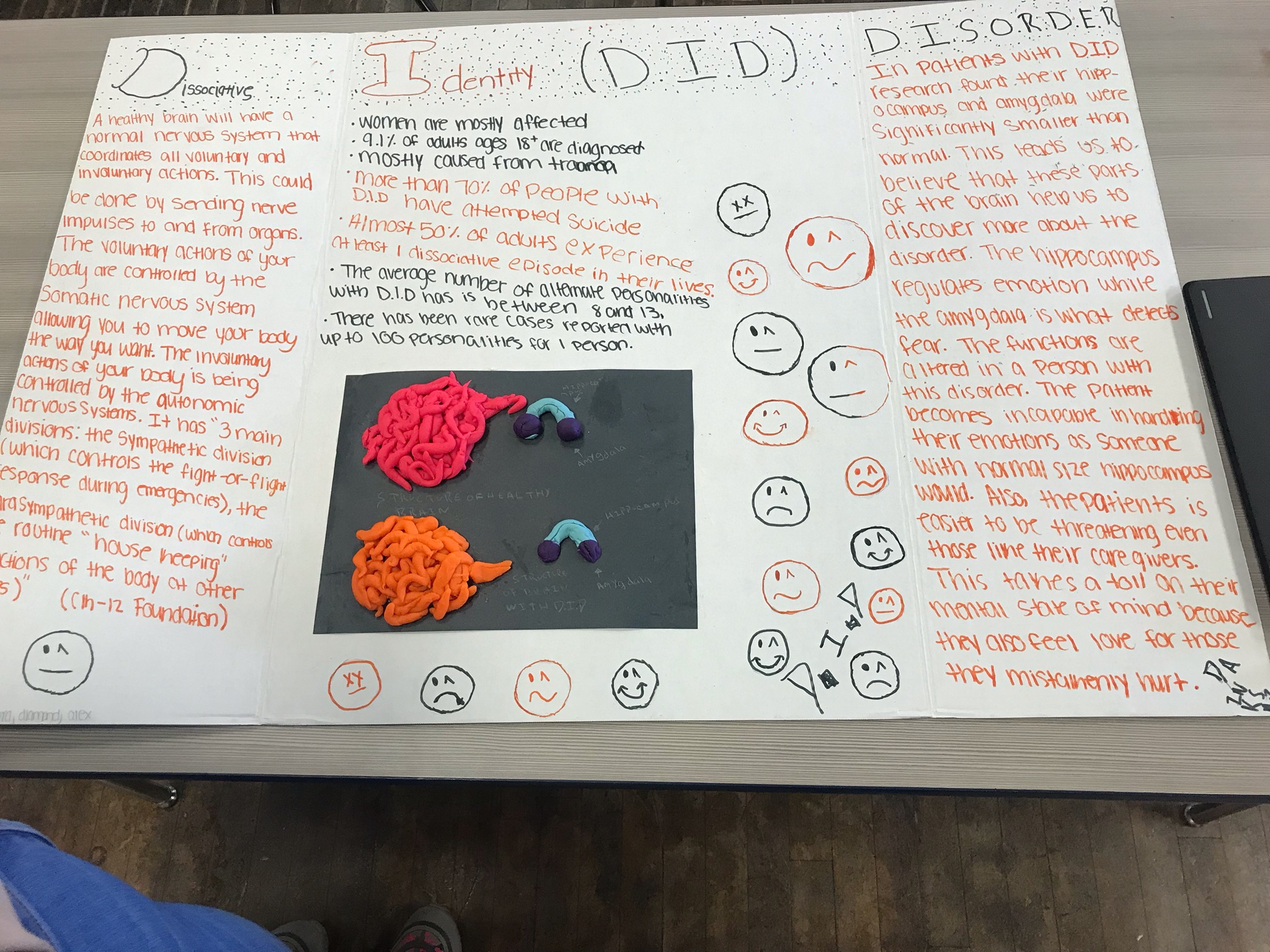 This project will give you breif descriptions of a healthy brain vs a brain with Dissociative Identity disorder or DID. I learned from this lots about how theability for certain parts of the brain to function depends on the size. If said region is too small you won't be able to use it to its full potential. I also learned that people are able to function naturally with some of their brain lacking function. The job of that part of the brain is most likely the only part affected.