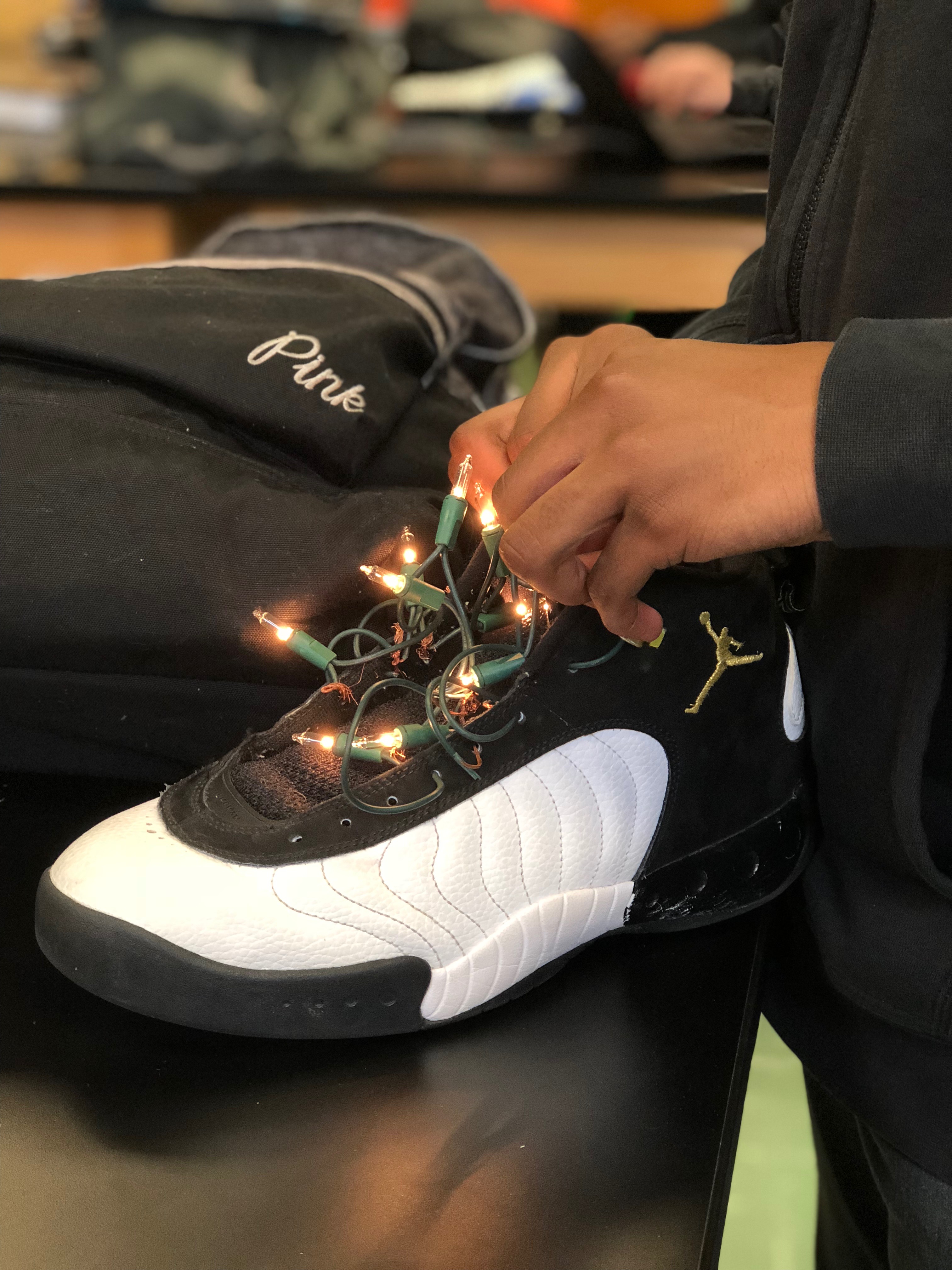 Artistic Paragraph: Darien: I chose to use a sneaker because I thought it would be cool to light up a sneaker. Also, sneakers mean a lot to me I always clean them when I see the littlest mark. I take great care of my sneakers I always make sure they’re good. Sneakers are in our everyday life we need sneakers. Sneakers are a culture in our community in today's world.