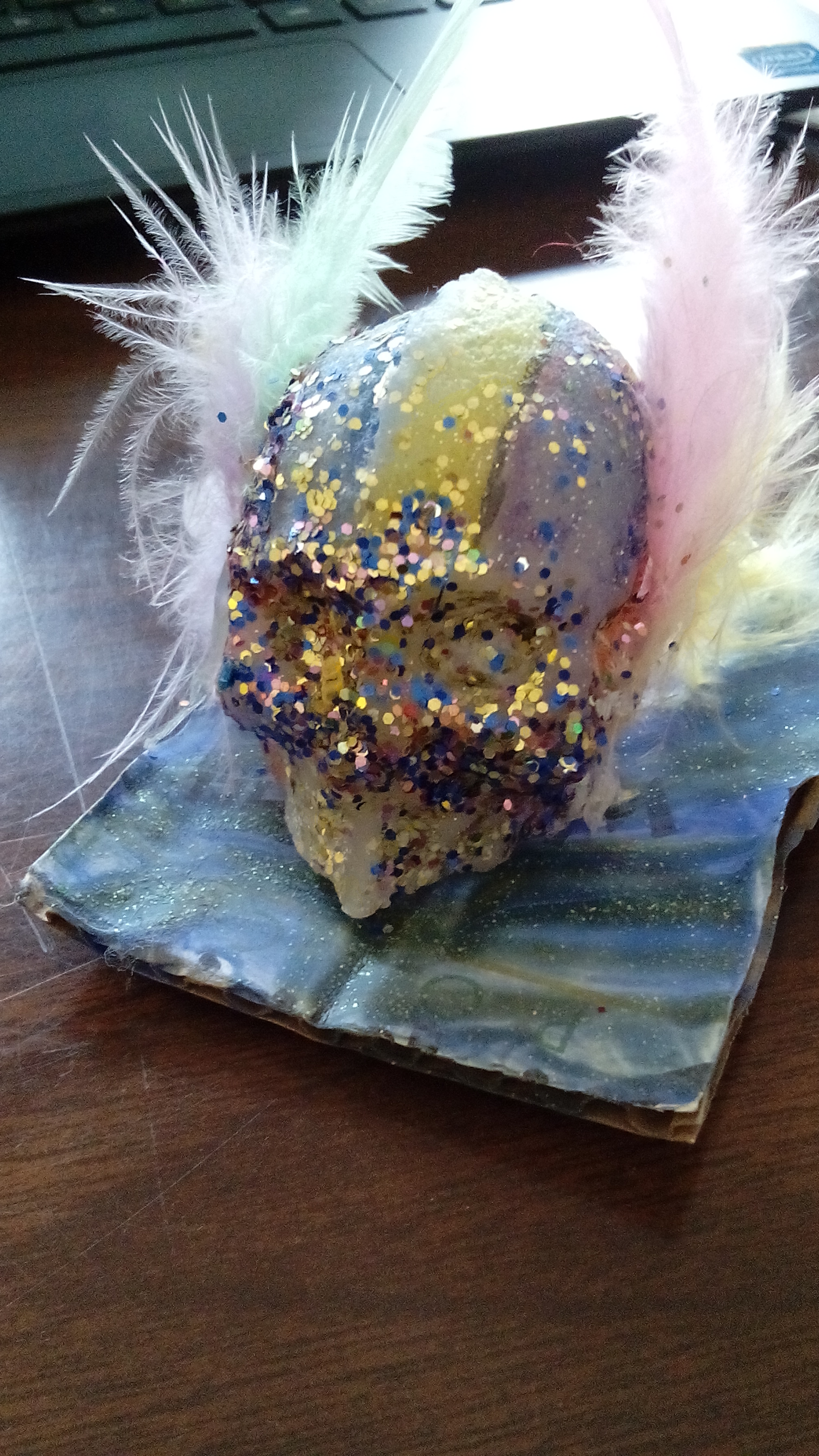 Eulogy (Skull/Mask) Posted by Dashawn McIntosh-Inniss in SPANISH 2 - Moran - E on Wednesday, April 15, 2015 at 10:47 am IMG_20150415_101818IMG_20150415_100449This project was about dead love ones in our lives and how much we care for them. Our creations and designed were based on someone close to us that died. Comments No comments have been posted yet. Log in to post a comment.