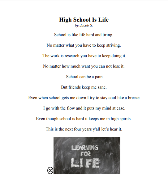 So this exercise was about learning how to write and under stand poetry and listening .As result Mrs. Bentum had us write about are experience so far in high school.