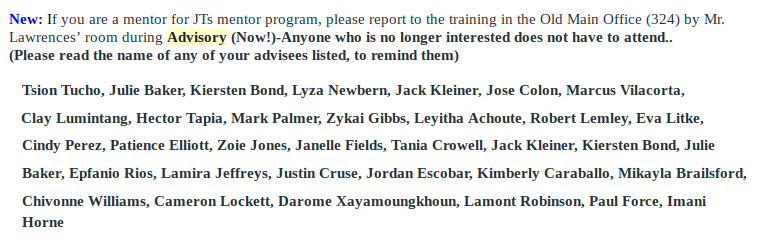 An efficient peer to peer mentor ship program is something that is very challenging to organize. Unfortunately I learned this the hard way, over the course of the nine months which I had to organize my very own peer to peer mentor ship program. Sadly the mentor ship program which I have organised with only two members who were actually fully able to participate isn’t what I expected it to become. All the beneficial principles still apply to the outcome of an efficient peer to peer mentor ship program, members both mentees and mentors of program still develop communication and self advocacy skills. However the approach we take to starting the program can ultimately determine its consistency and success. In other words the program I organised tended to have a majority of senior upperclassman participating as mentors, which was ideal at the time because these students had the most high school experience. However high school seniors at Science Leadership Academy At Beeber tend to have a full plate with applying to colleges, working on their capstone projects, and just keeping up with the usual load of school work they have. So I found that not many mentors had the time to meet weekly with their mentees. Another issue was that the way I started the program; it could have been much better in terms of the process in choosing mentors and mentees to participate. Originally mentors would have to go through mentor training to have a mentee but including this within the program is almost another program interior on its own. That being said organizing both these things at the same time made it more difficult to make sure both aspects were running efficiently. Lastly when I was organizing this program I had two mentors, but I still couldn’t organize all these things by myself in time to start the program early on in the year. Starting the program early on in the year is probably another major aspect of an efficient mentor ship program, this way mentors and mentees can get to know each other throughout the year not half way through it. The reason I was unable to start the program like this is because I had to first organize everything on my own, if I were to start over I would work on this during the summer leading up to the school year.