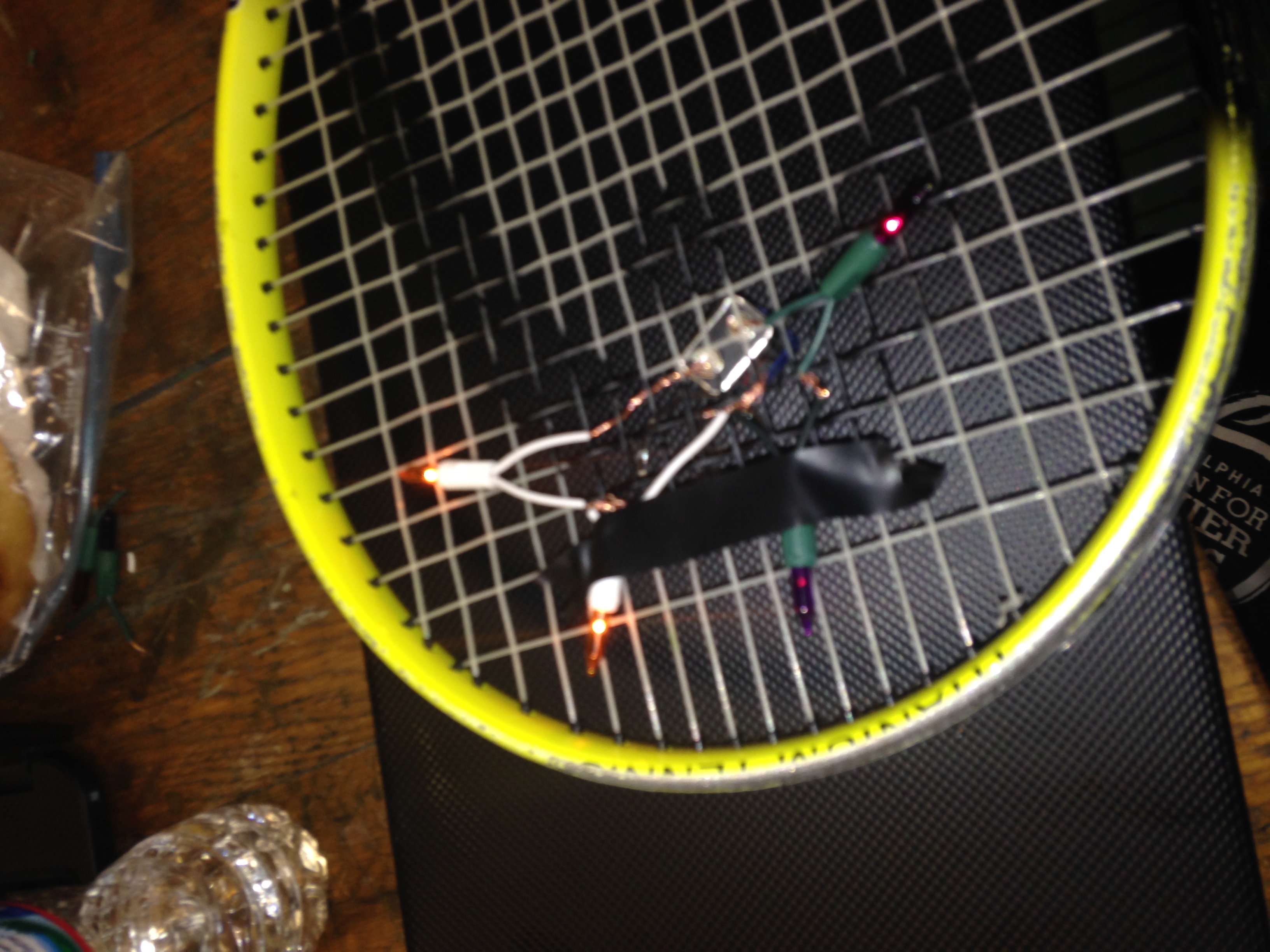 These bulbs are on a HEAD tennis racket. I play tennis competitively and I also practice to get better. Tennis is one of the sports that I love to play and still continue to play ... to this day. I put the lights on it because when I am focused and or working and playing hard my coaches call me a god . And god does light right ? Finally tennis is something that I will never get tired of and can see my self playing it as a career.