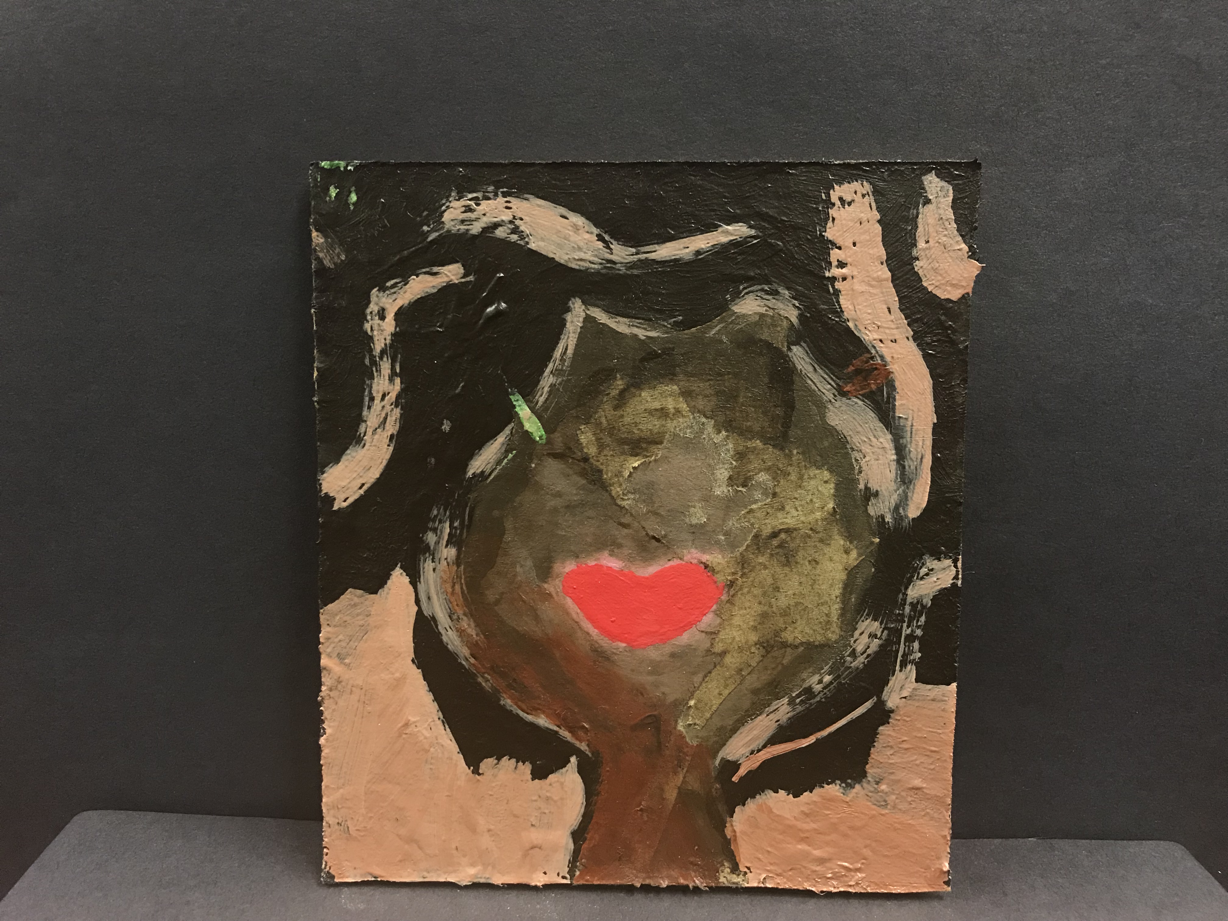 For my art project I did the limited palette project. I choose up to 5 colors and from those five colors I can only use them for my whole project. I could mix them together, or use them by themselves but I had to use my choice of colors. My portrait is a painting of a black woman's silhouette. The portrait t shows her neck up, so her dark brown hair with her bold red lips. I didn't draw any eyes or nose of that nature.I believe that one of the notable features of a black women is her hair and lips. I just wanted my portrait to communicate the black culture. I used acrylic paints colors including: brown, pink, purple, and white. I also used a mixing palette and a palette knife to help me mix all of my colors together. I did my painting on a piece of cardboard. Now looking back on it I wish I used canvas because I predict that it would have looked better. One of the most important technique of this project was mixing for me. I had to thoroughly go in and use my palette knife to mix my colors together to create a new color. If I could change one thing about my project I would change one of my colors which is purple. I really didn't use it as much in my painting. In conclusion I really did enjoy doing this project it was really fun and studying when I was mixing the paints together.