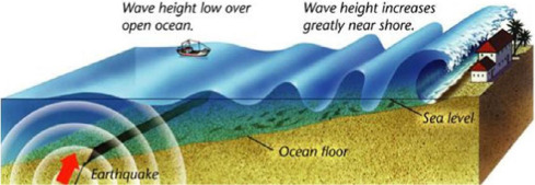 The most common place to see a Tsunami is the Pacific Ocean, specifically the Ring of Fire; Also known as the Circum-Pacific Belt this area had the highest number of tsunami activity. Tsunamis are caused by a under of things, most commonly being underwater explosions and the shifting of tectonic plates. These cause deep displacements of water that rise to the surface and create large waves. These waves then travel hundreds of meters until they reach land.