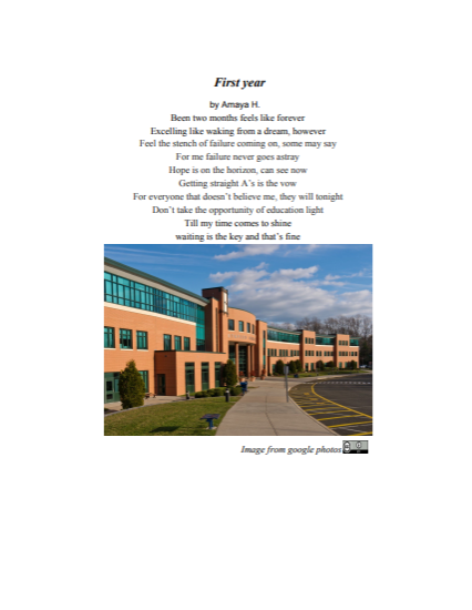 My First Year Posted by Amaya Hall on Friday, November 9, 2018 at 8:34 am my first year Comments No comments have been posted yet. Log in to post a comment.