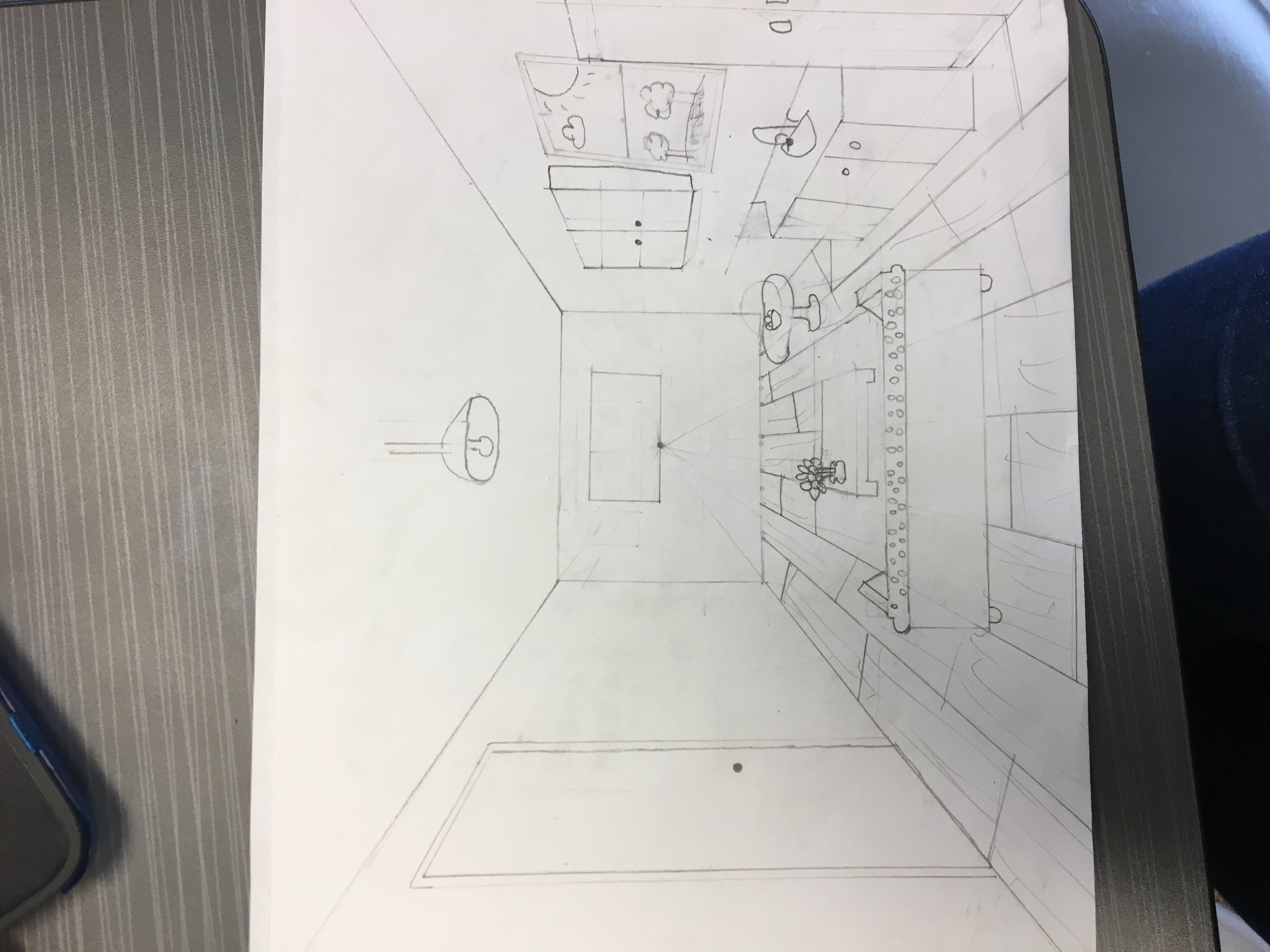 One tip for someone who is going to do this project is that when drawing or lining corners make sure you draw a very light line that connects to the horizon line.