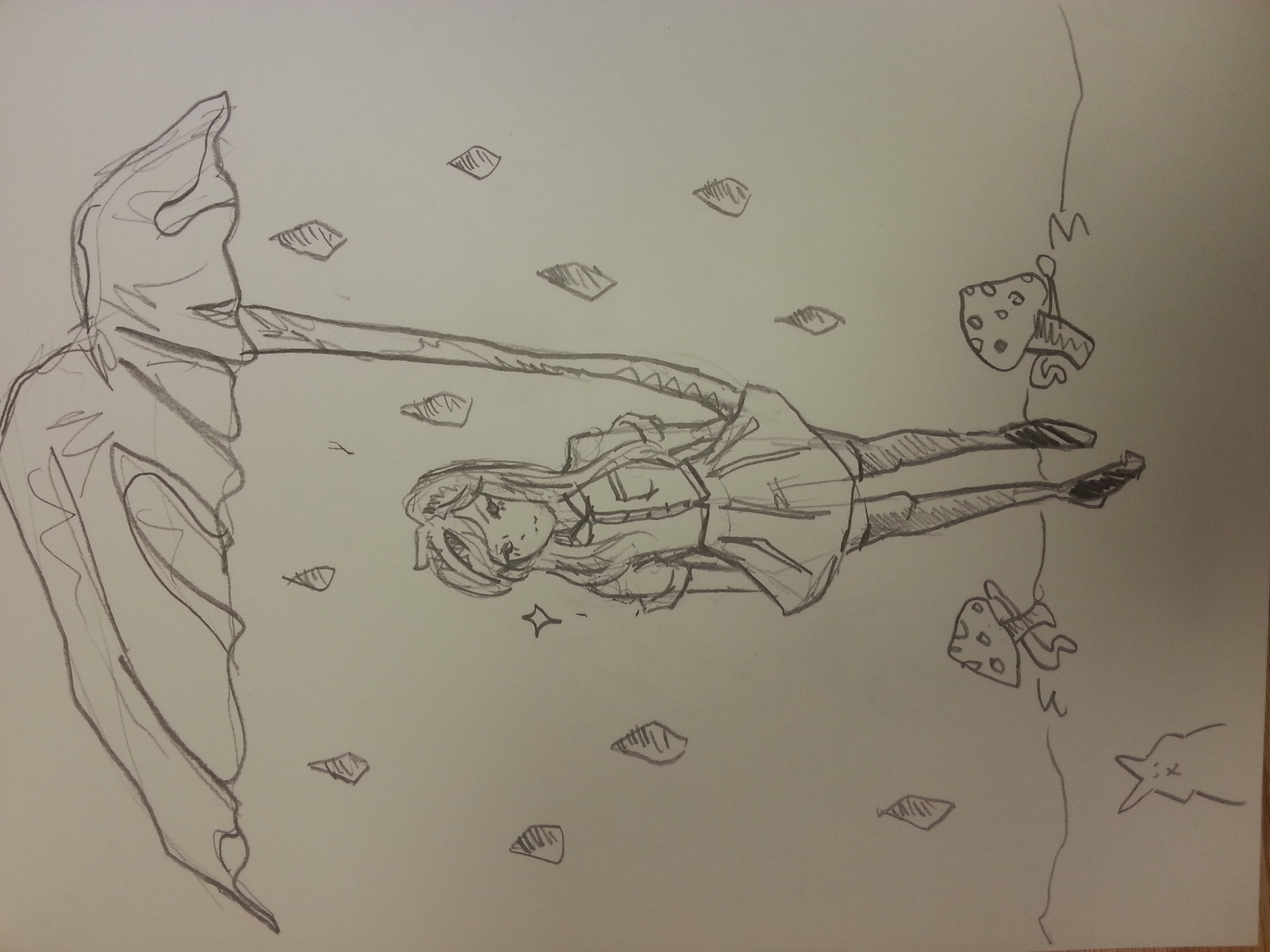 I drew something that came to mind. I enjoy using pencil in different ways and I will continue to experiment. I don't like it, but that is okay. I think that I like the clothes the best out of everything in the piece. I want to learn how to draw torsos and arms better in the future.