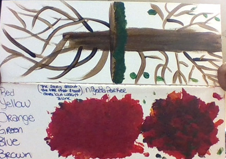 On the top picture I tried to draw a tree. It is a terrible excuse for a tree but on my project it will be much better. On the bottom picture I tried to blend some fall colors together. That was a sad mistake to so my project will be much better.