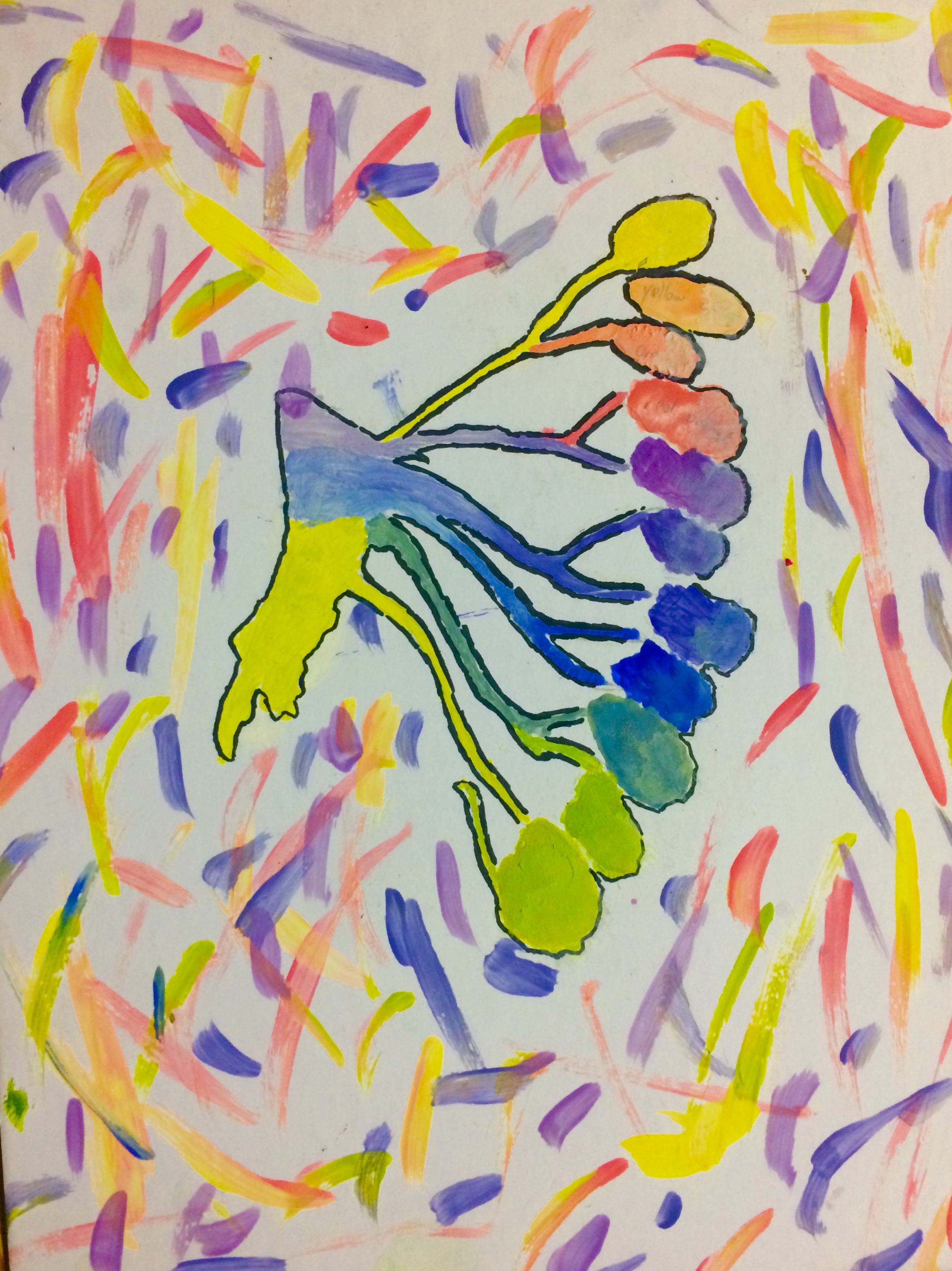 When I started thinking of this project I wanted to do something different from just a regular color wheel, so I went on google to see different ideas. I saw a color wheel on google and I liked it so I did that for my project. I did that because I thought it was cool how it had the colors in the leaves. Even though this is not my original piece I added my own touch to it. What I did was; I did a tint from the leaves going down to the root and I also added a background of different colors all splashed around in an unorganized way.