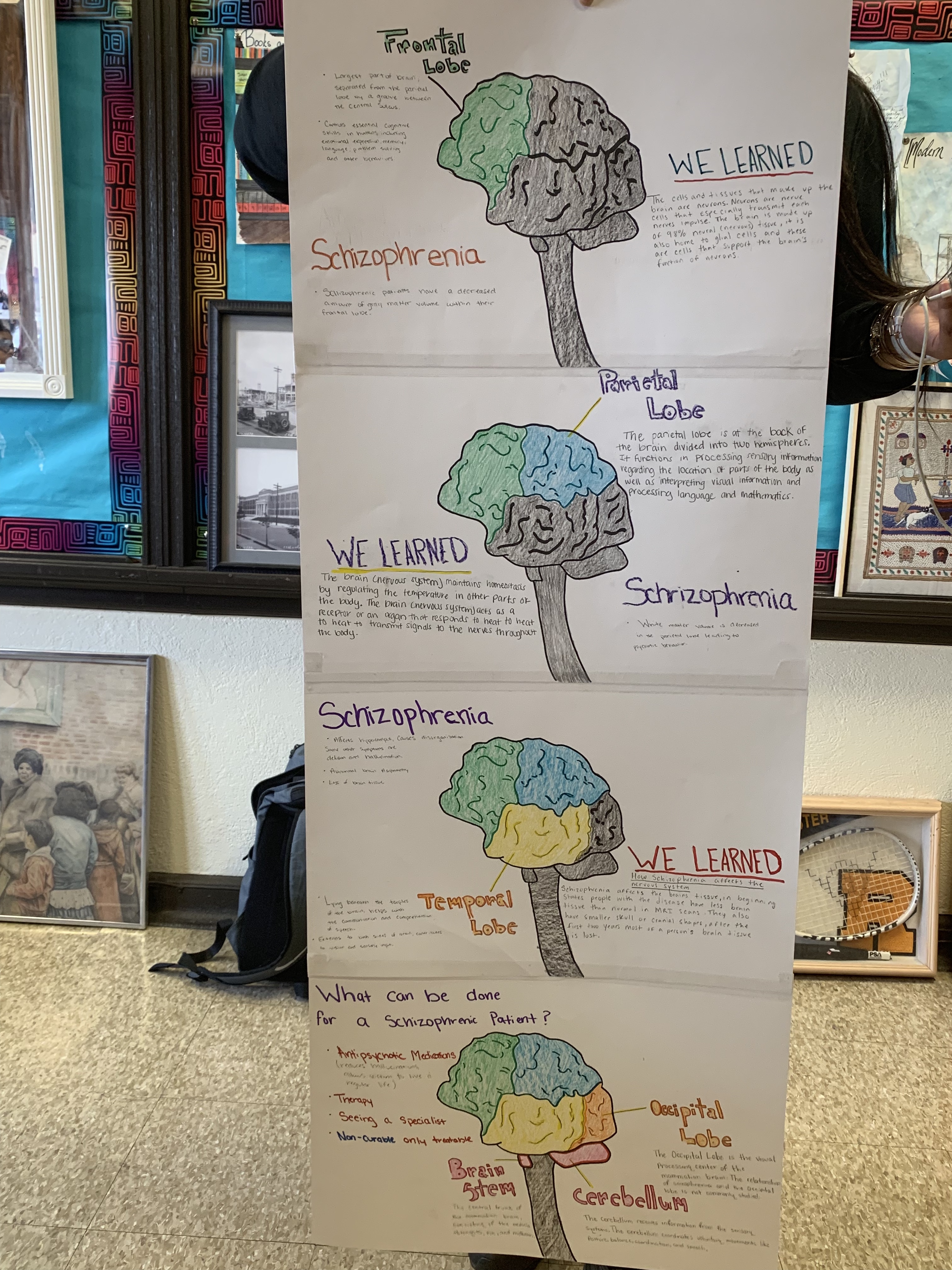 In this diagram you will find out how our disease Schizophrenia affects the brains nervous system. We include definitions of the different parts of the brain and what the effects can do to damage the brain. Overall I learned a lot about schizophrenia much damage it can cause. This disease can change your whole life around and we need to make sure that people are aware of it and get the proper treatment needed if they are affected by it.