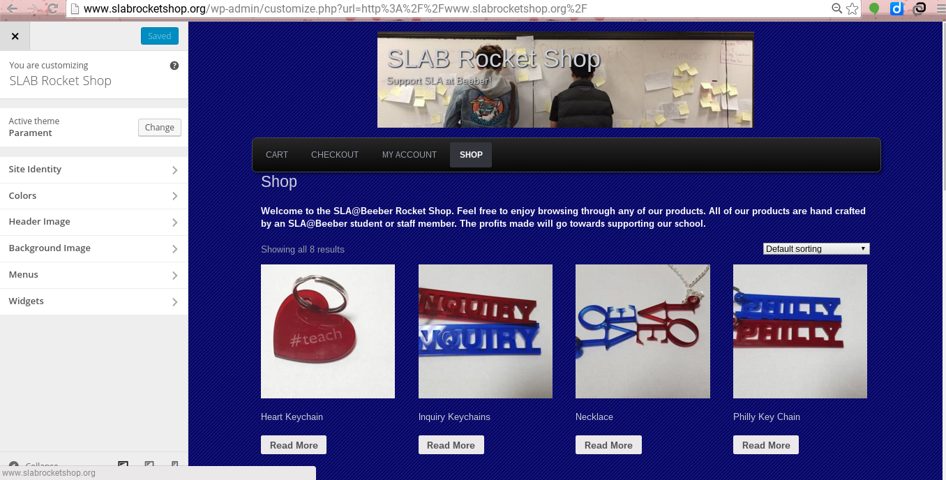 For my third quarter Tech project I was partnered with Jaden, Caleb, and Tesfay to create an online shop for our school. The link to the shop is http://www.slabrocketshop.org/. For the shop we took pictures of popular items currently being sold at our school. Such as hoodies, sweatshirts, sweatpants, and socks. Along with some necklaces teachers and students have made. The idea behind the website is to make our school seem more official and to help the school by making more revenue with the ability to sell items online. We will have to update the website from time to time when more items are available or if something happens to be in popular demand.