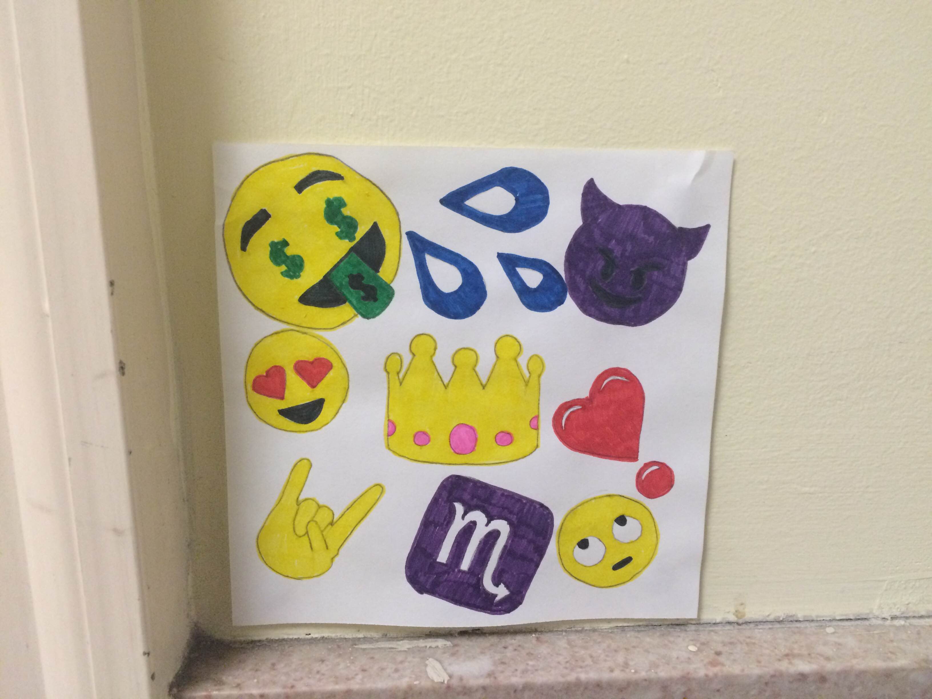 What inspired my work was a piece of street art that had money signs and peace signs. So, I put a twist of my own thoughts into it and added emojis.