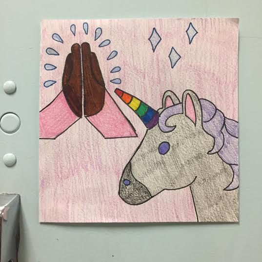 There isn’t a meaning. The unicorn is something i’ve always liked. The hands represent god, and how I am a child of god. My inspiration came from Apple, their emoji’s perfectly represent what I like. I chose the location simply because it my baes locker. This project changed my perception of art because I got more of an understanding that not everything is art, and that it came be hard to create something of your own because there is a chance that someone already got to the idea and it’ll cause intimidation on the person. It changed my perception of Art from what i’ve seen in public because you get an understanding of why they do it. They do it because they want others to see their ideas and things they can create.
