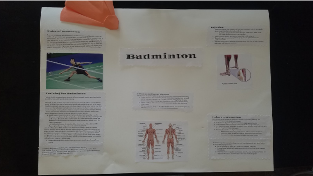 For our sports physiology mini-project, we decided to investigate the physiology characteristics of the widely known sport badminton. Originated in China during the fifth century and created in England. It is the national sport of various Asian countries. Badminton is played with rackets and shuttlecocks. These shuttlecocks can reach the speed of 306 mph and a person can run almost a mile in a competitive badminton match. As incredible as this is, our poster explains how our body can even perform such acts necessary for badminton, such as swinging a racket or running around the court.