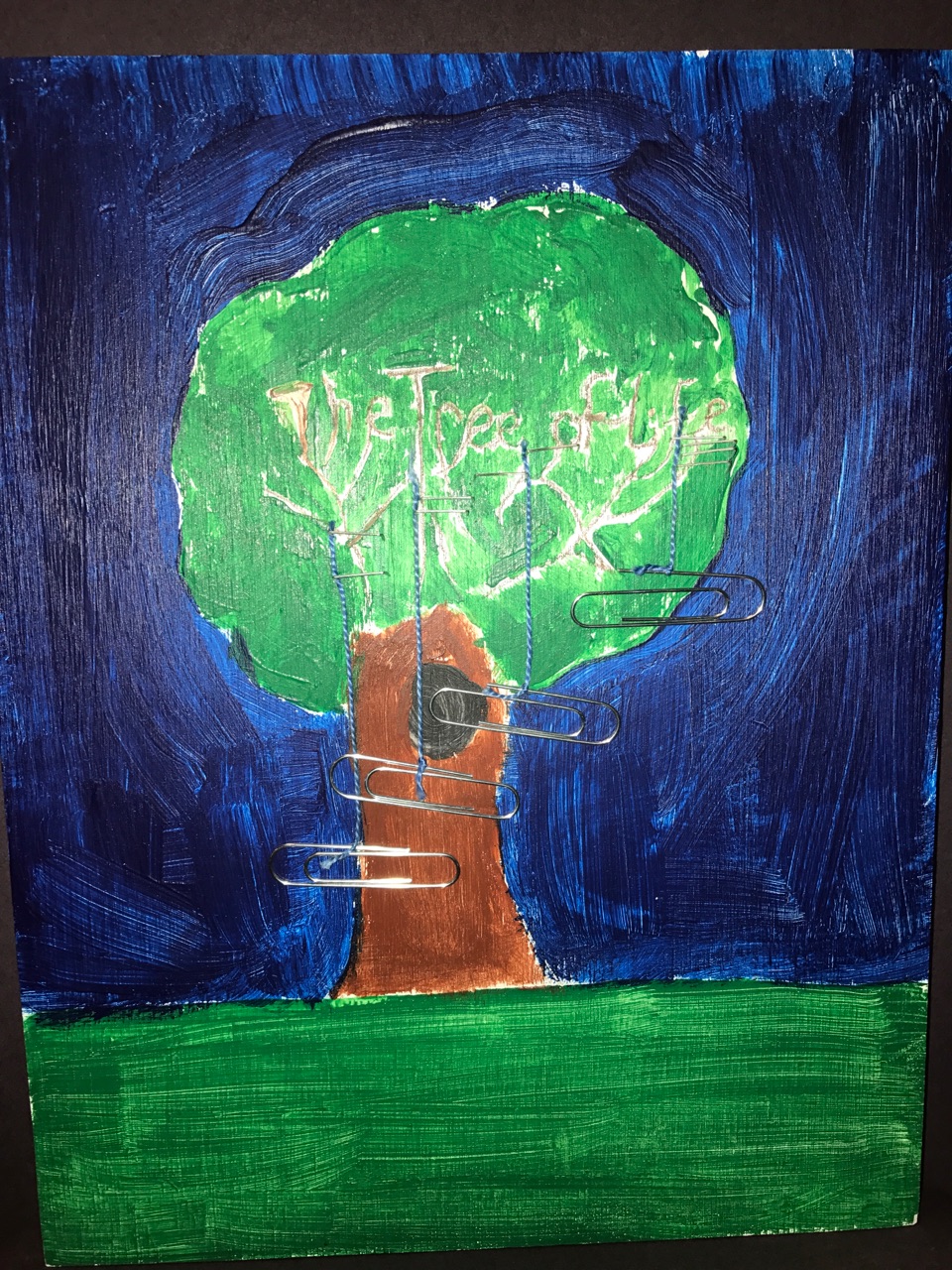 The inspiration for my project came from a saying, “The Tree of LIfe”. I painted a picture of a tree in the middle of empty land. The tree is painted normally and it has a background that is dark blue with paper clips hanging from it getting shorter as they go with intentions to make the clips look like steps but they are supposed to be tree swings for the context of the painting. I decided to to paint this picture because I felt that it currently represents my life. The steps are meant to represent the different stages in life that I have been going though. This project is a mixed media project and for my different medias, I used wood in which I cut myself to use as my canvas. I then used white paint to cover the entire piece of wood and I continued to paint my tree and grass using green and brown. I painted my background dark blue to make the tree pop and because I felt that the color was mysterious, like life itself. Compared to my previous work, this is somewhat different because of my choice to paint. I usually draw or color everything but, as far a conveying a message, I always try to convey a message. When doing my work, I noticed that the way I painted was an important technique because cleaner strokes made my art look better in my opinion. I’m proud of myself for sticking to my idea and I surprisingly, I’m satisfied with the outcome, so, I’m proud of myself for beginning to have confidence in my work which is something that I've learned to do, love my work because it is my creation and I’m sometimes too hard on myself. As always, if I could change anything, it’d be to manage my time better and try not to miss classes because it affected how much of my project I was able to get done. I found a painting by Vinsan that somewhat reminded me of my art because of the painting techniques and focus on nature.