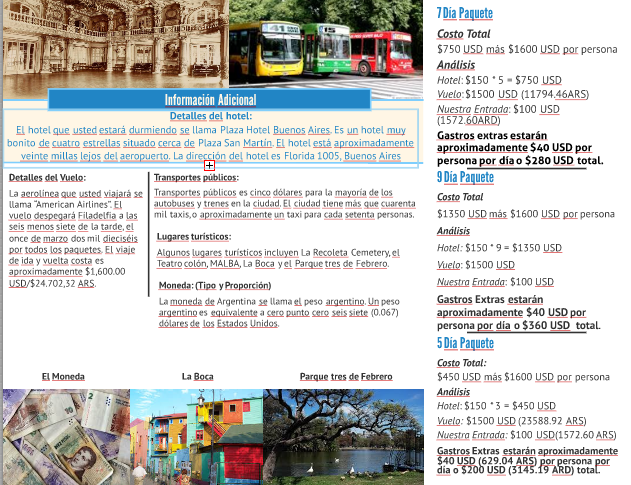 The project for me was really interesting and kind of fun, learning all about travel and attractions and places to go in the place we chose. My group and I chose Buenos Aires, Argentina.