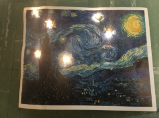 This project represents me because I have a huge interest in art and Vincent van Gogh is personally one of my favorite artists. I chose to do this for my project because I liked the way that the lights represented the stars in the painting at made it look really pretty. In addition, I thought it would be a clever way to put together a circuit, and a fairly straightforward project idea.