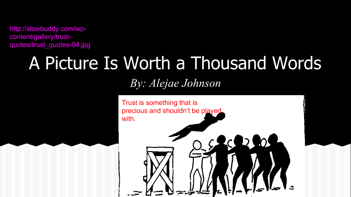 Trust is something that is worth protecting and cannot be taken advantage of. Trusting someone takes commitment and honesty. Without those thing you really can't trust people. This picture means to me that we all have to trust at one point, but we have to pick the right people to trust.