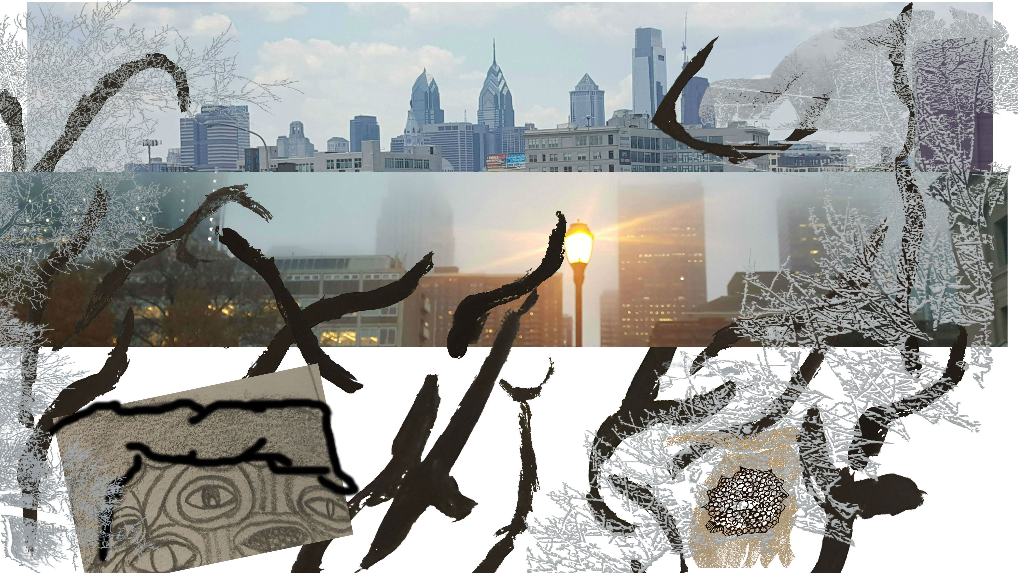 This project is a compilation of some of my previous works. I started with two photos I took of the city and used that as my background. Once I finished that I used the wand tool to segment off pieces of a painting I did to decorate space before moving onto the next large piece I inserted. I meant to expand the topmost photo so that it fit the page but I could not because I had saved the file, which means doing it over would require redoing everything that covered the photo as well. For the same reason of not redoing everything, I never added my third city photo to the bottom of the page. This means my final project has two major flaws that I did not intend to be there but I cannot really redo without erasing my other work. I covered the space the bottom photo left out by adding in pieces of drawings I did. I was never able to fill the empty space around the top photo in a way that makes sense to me.