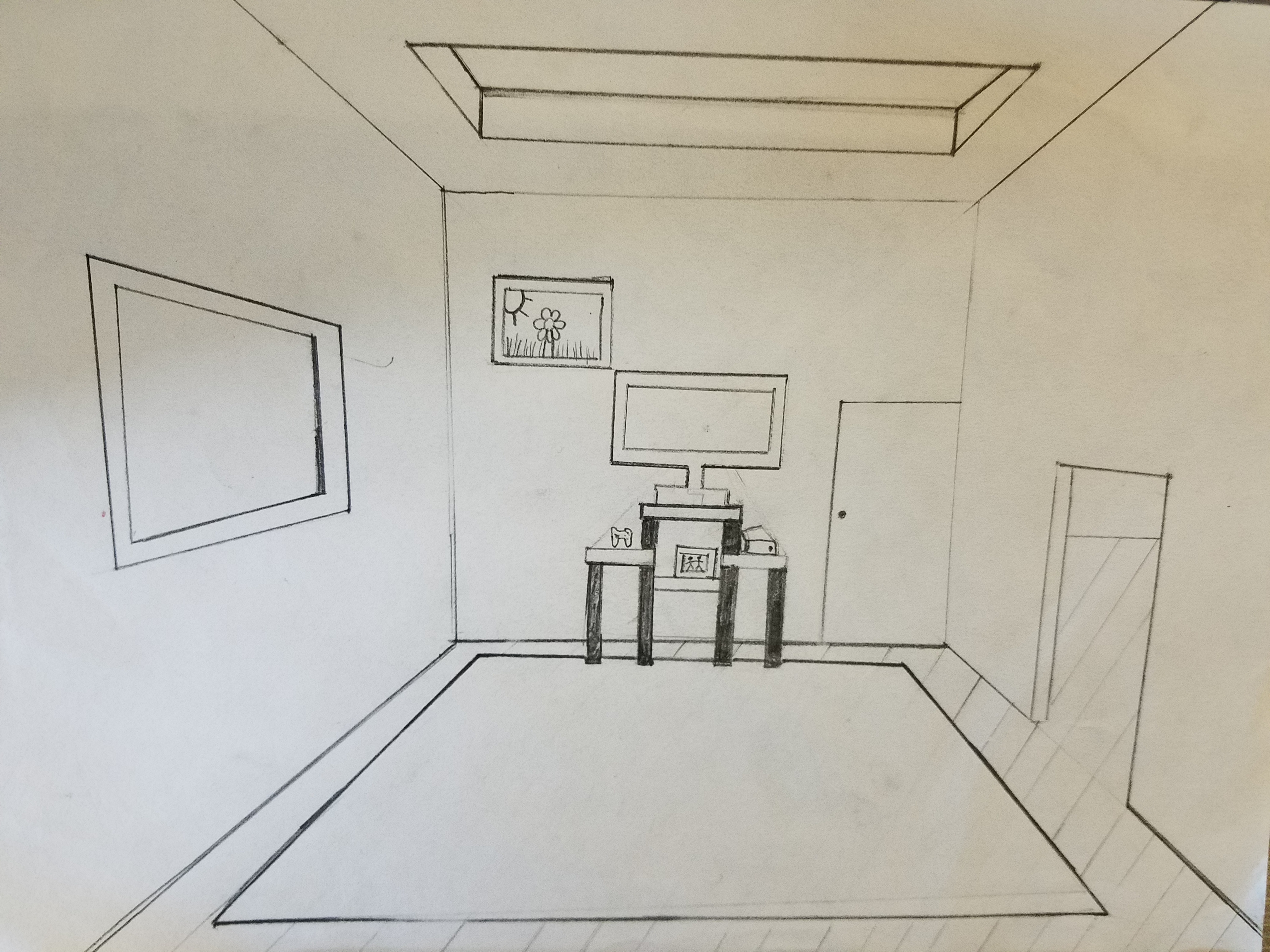 In my drawing I have wood floors, a rug, a skylight, a window, a TV, and a TV stand. I have learned how one point perspective is used to make your drawing look 3-dimensional. I am most proud of the floors.I would improve the darkness of my lines. One tip is to know what you are going to draw so that you don't have to erase much.
