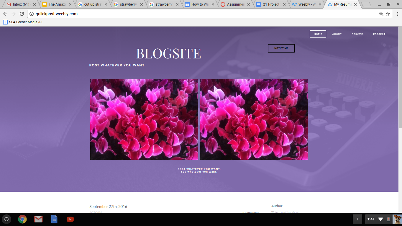 My website is basically a blog page for anything. You can post what you want and stuff. During this project I got stuck a little bit because I couldn’t exactly figure out how I wanted my page to look, what it should be about or what the name should be. After a while I came up with a website where you can just post what you want quickly and that’s How I got the name “quickpost” for my website. After completing the project, I learned how to work and manage website builder . If I were to do this project all over again I would make my homepage make more sense because it’s a little confusing. I’m not really inspired by this project to do anything. I chose the theme first and then I wrote on it, the theme didn’t really change what I had to say.
