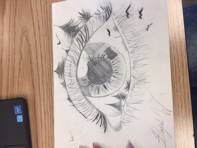 I decided to do line texture and volume because i liked the concept of the project and i also was a little experienced already and i also just love the way that black and grey art. What i was hoping to achieve with this project was to create a realistic eye with a smokey look and a realistic pupil. What i think i achieved through the creation of my work is showing detail in the pupils and the trees. What i used to create my art was a detailed pictured that i referred back and forth to to achieve the template of my picture. Then used volume and shading to make it look more realistic and to give it more detailed. At the end i used charcoal on the eyelashes to give it a smokey look. What inspired me was a picture on google @ https://goo.gl/images/7MpOQq . A technique that had a big impact on this project was blending the dark shades to show volume.