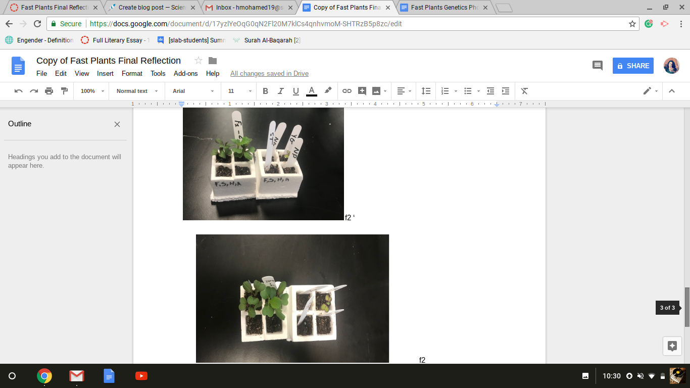The F2 generation look like how we predicted them. We expected the colors to be different since we took the seeds from the first generation to plant the second generation. The F2 generation grew faster than the the parent generation. The first generation barely grew at all. Some of the factors that could have hindered our plants abilities to thrive is how much we watered them.