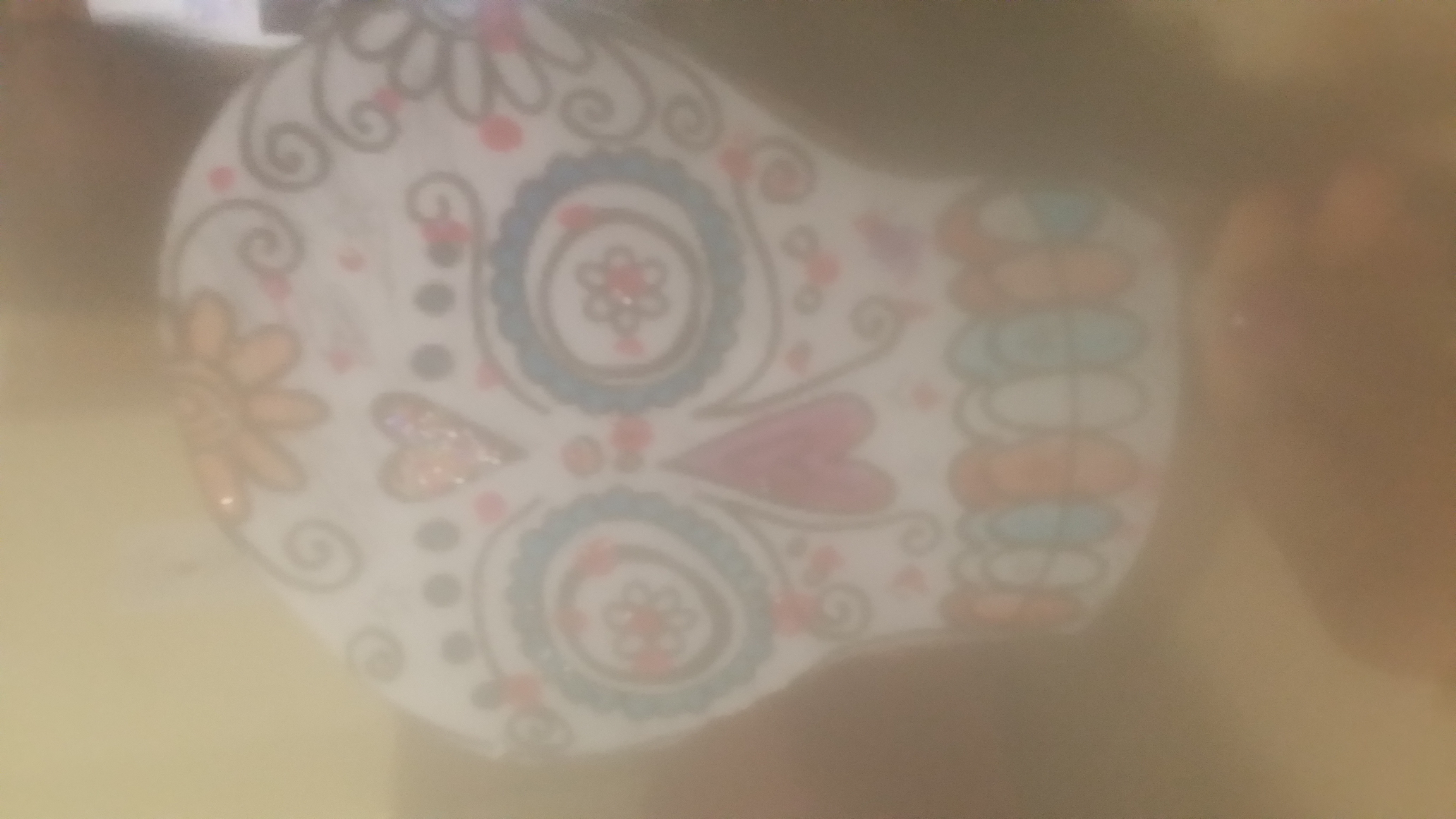 The person who passed away was my grandmother,she was sweet and nice and put everyone before herself.She loved to go to church.My Grandmother meant a lot to me because she was a special person in my life and helped raise me.I decided to create my sugar mask in rememberance of her because This was around the time that she pasted away and she meant a lot to me so why not do the sugar mask in rememberance of her.My sugar mask refect my grandmother because on the mask the teeth are red white and blue representing the u.s flag and this relates to her because she lived in the u.s.Also the mask is covered in pocka dots because she loved pocka dots.Also the mask has feathers on the top of the head because she used to wear those feather hats to church on sundays so the feathers reminded me of her so I decided to use them.The top of the mask is grey because it reminded me of her hair she had some grey hair because she was old.The sneaker on the mask reminded me of her because she loved shoe shopping.The glitter on the mask reminded me of her because she was a creative person and she love to accessorize things.The colors purple and all the other bright colors are on the mask because she liked bright and pretty colors.“Día de los Muertos” opened my mind up to celebrating the passing of loved ones because As I saw all the pictures of families gathering around each other every year to celebrate the passing of their loved ones it reminded me of my loved ones who has passed so it made me open my mind up to the idea of celebrating “Día de los Muertos”.