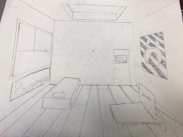 My room has many different things in it. It has some designer logos in the room and a skylight. As well as a bed and a Samsung TV. I learned about how different you can draw rooms to give off a different atmosphere. I'm proud of my creativity. I think the posters and TV give it a lot more personality. I wish I erased less...it seems really obvious that I messed up a little bit. My advice is to pay attention to the website telling you how to draw certain objects. It's important!