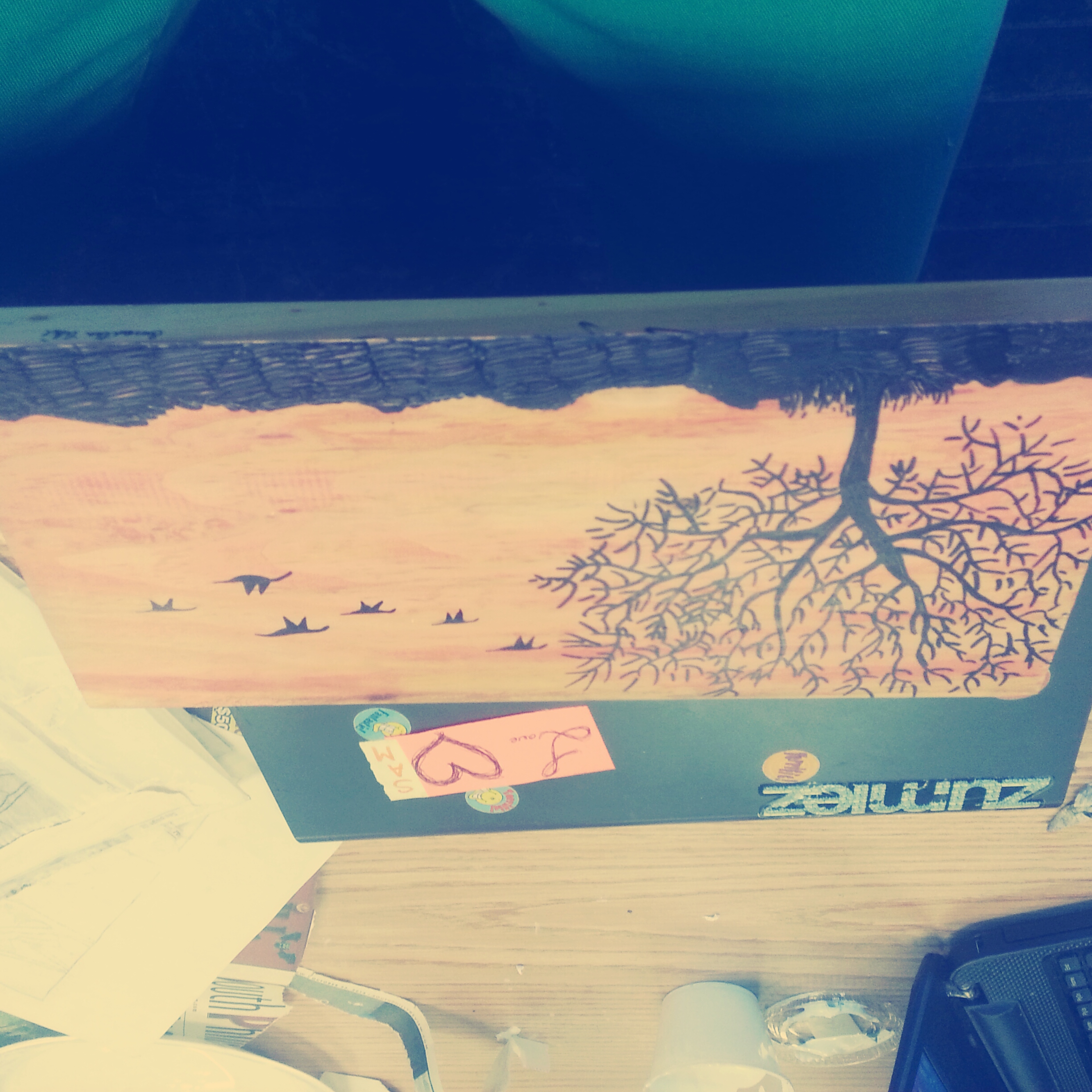 For my project I’m doing a tree of life on a canvas. It will be a sunset setting and the tree will be filled with leaves on one side and on the other side will be dead with no leaves while birds are flying away.
