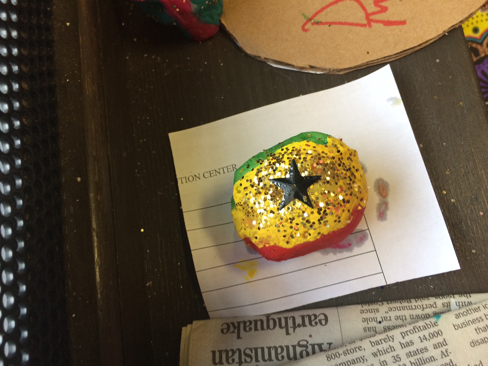 During my creation of the sugar skull, I thought so hard about what would I do. Coming to a conclusion last minute, it was right in front of my face. I decided to the flag of which my dad was from. Which is Ghana, the colors were red, yellow and green with a black star in the middle of the yellow. Making the sugar skull his flag shows and explains his background and different morals he had in life from others. Also, choosing the sugar skull as the Ghana flag represents more than just my dad but the whole Ghana community. As my dad and mom once said “At the end of the day, us Ghanaians we are a family”. So I just didn’t want to think about my dad but my history/generation who I and others have lost.