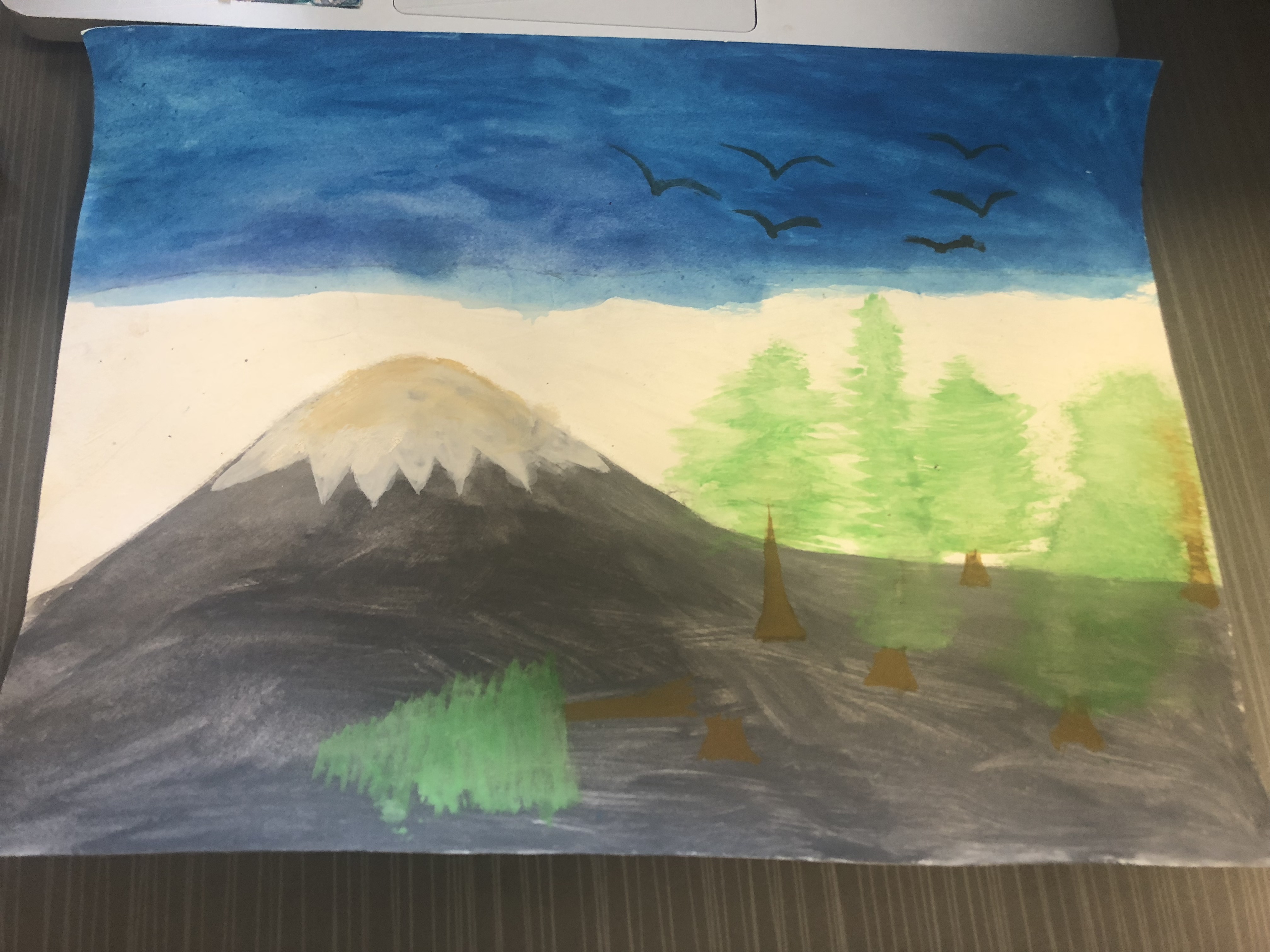 I do not know an artist who makes similar work to me. I don’t get inspired by other people I just go with the flow of things. One technique I used working with tempera paint is layering. This was really useful to get colors to pop. I am most proud of completing because I thought I would never finish. If I could change one thing I would change maybe the color of the sun. I learned that even if there is a plan you don’t have to strictly follow it if you change your mind.
