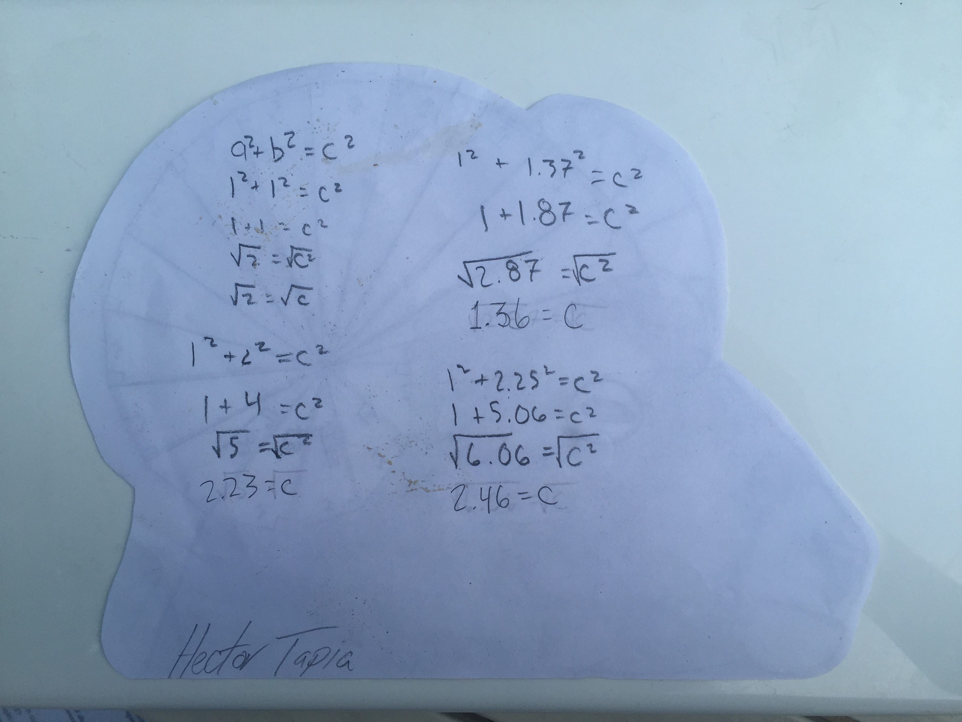 When I created the Spiral of Theodorus it required me to use a protractor to measure for the angles and the different sizes of the triangles. You use the protractor to make sure all your triangles measure to be exactly 90 degrees. Each triangle is supposed to be 1 inch apart. For the math component of this project I used the Pythagorean theorem to check that my triangles were accurate.