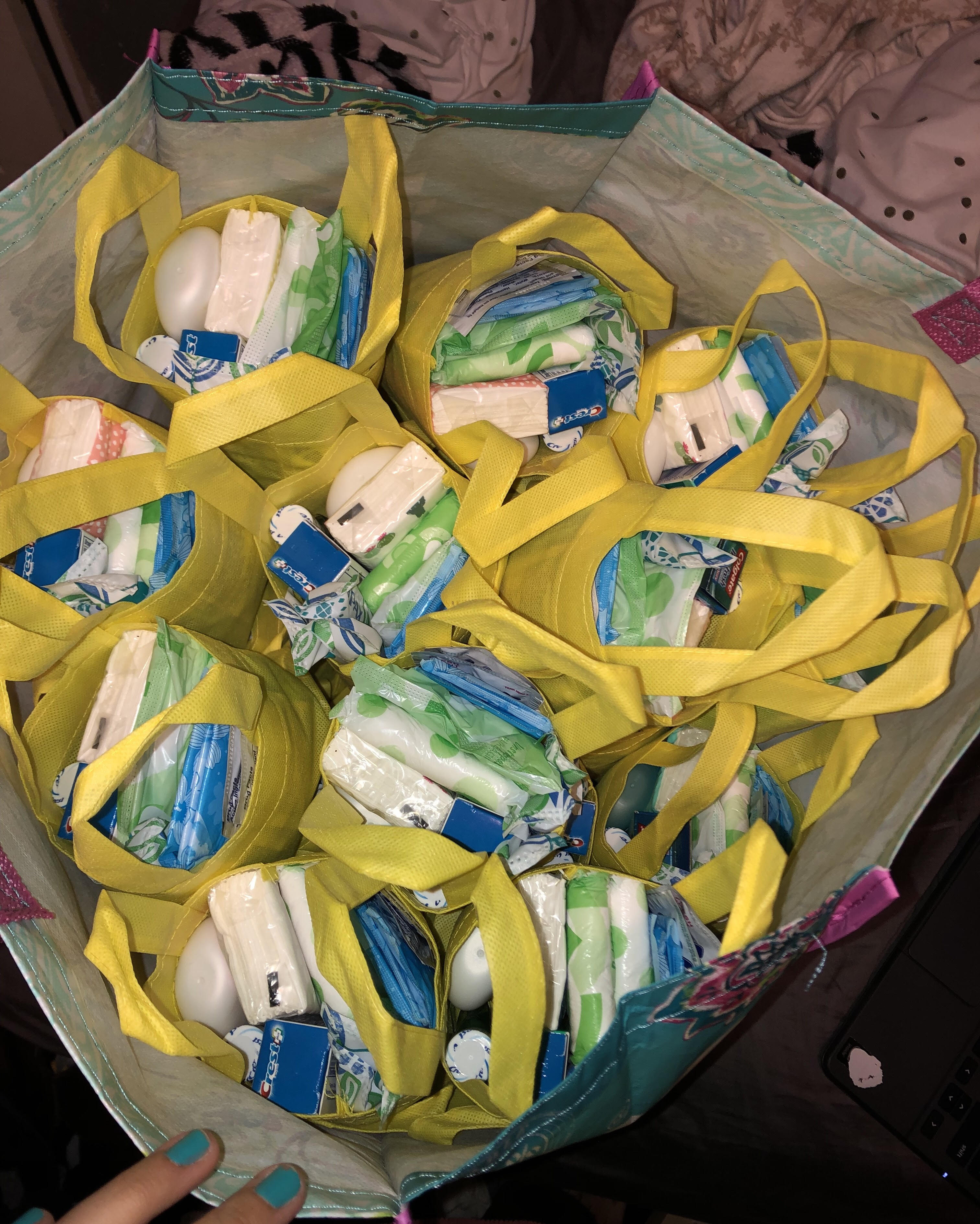 For my capstone, my friend Cindy and I decided to work together and focus on the issue of homelessness in Philadelphia. Being homeless in Philadelphia is already hard enough, but women have an especially hard time. Even though we aren't able to solve homelessness as a whole, we focused on a women's safe haven, Women of Change, and began to do our research on what they were in need of. After learning what was needed the most, we decided making personal care items would be most helpful, so we began fundraising. On average, they hold about 25-30 women, so we made 30 bags to donate to the shelter, that all included tissues, feminine hygiene products, wet wipes, deodorant, tooth paste, and mouthwash.