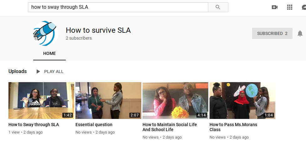 For my senior capstone, I created a youtube channel for kids all over, mainly targeting to SLA students basically to show them the fundamental steps for passing SLA successfully. I walked around the school and interviewed students about certain topics and gave them advice about it. My two main ve questions were, how can students at SLA students better their High school experiences and, how can students balance school life and social life while making their high school experience memorable and fun? Overall my partner and I videos turned out good one of our videos reached 30 views which is very exciting to see. I hope our youtube channel will make a big impact and inspire students all over.