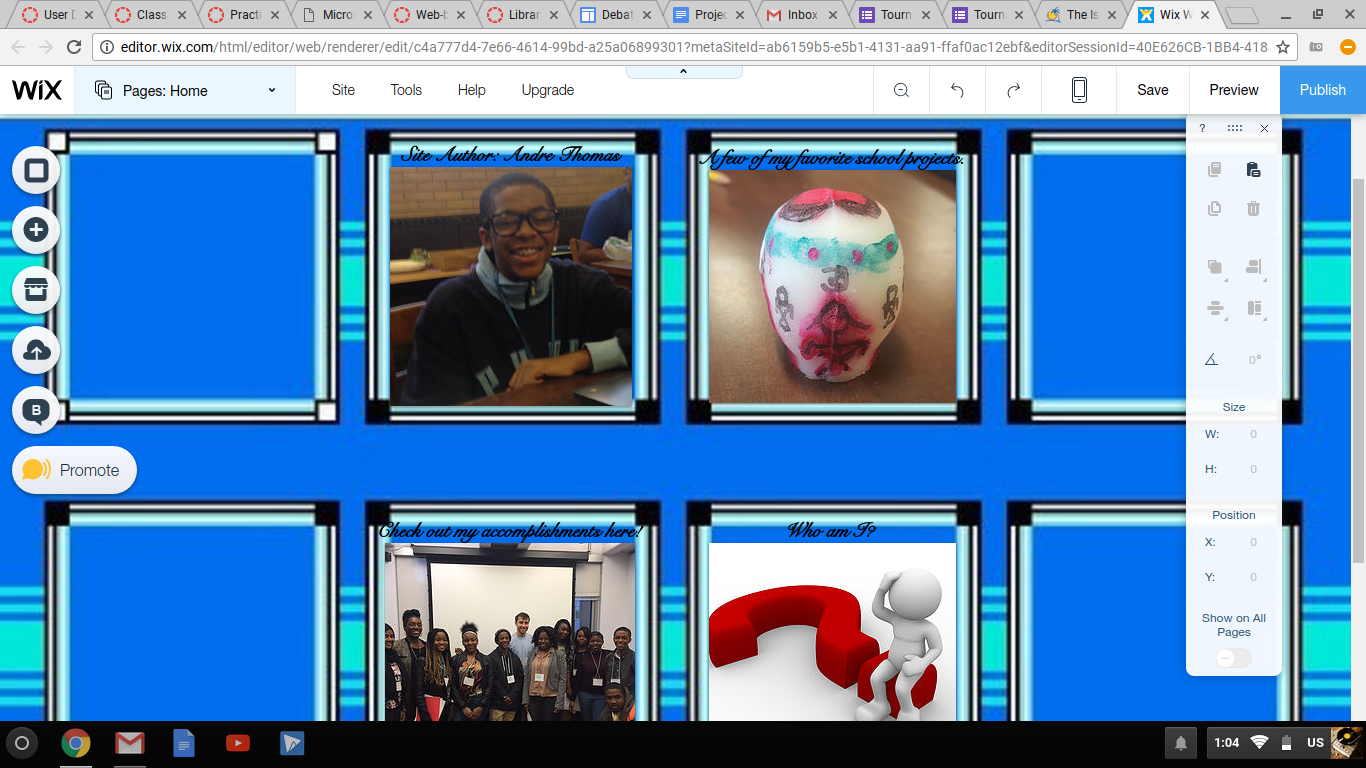 Here are all the slides I touch over about my media design project “Home Page”, “About Me”, “ My Resume”, “ My Project” and also I have included a etc. slide to tell everyone thank you for looking at and viewing my website also learning about who I am has a person. Starting off for my “Home Page” I wanted to let everyone know what they are looking forward to seeing in my website project it’s like a small welcome and greeting also introduction. For my “About me Page” I gave just a small life bio of who I am and what I do in and out of school and mostly my hobbies and interests about life itself also I have include an video of one my dearest closest talents I like the most about my life is make creating music and one of the musical talents I have is playing “Drums” and I will show video of myself playing drums at a wedding. Now for my “Resume Page” I just include some accomplishments, and Job opportunities that I was offered, also talents that I have have in my life. Another slide that I have included in my website page was about “Project’s Page” so what I have done for project was I just displayed project that I have done in the past year, also I have included an project that I have done this year that I just got finished doing not too long ago and they were both about “Bio-chem” because I love science. Also the last project I have included was one that I am working on now today a flute that was for “Stem and Intro”. Now for the very last slide I just a include a “Closing Page” I just tell everyone thank you for viewing and hope you like the website and hope they have enjoyed getting to know me.