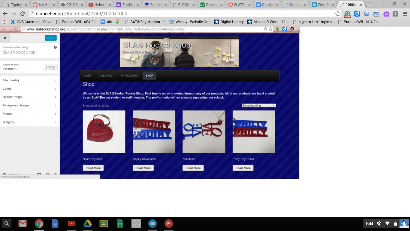 This marking period we created an online store. In the store there is clothes, wooden product and jewelry. We plan on adding artwork but we need to ask people if they would like to sell the things they made.