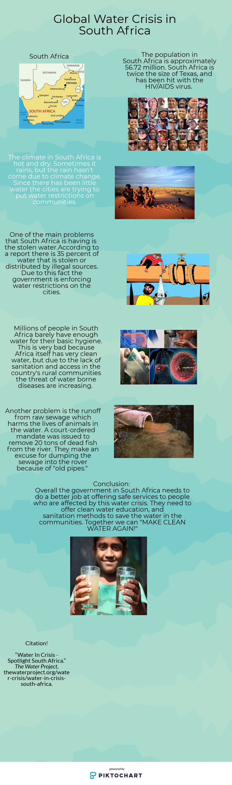 What stood out to me during my research was the simple fact that small places such as counties will not have access to good water. Once they begin to speak up and ask for a change they have deal with spending more money on water bills when their water is already affected.