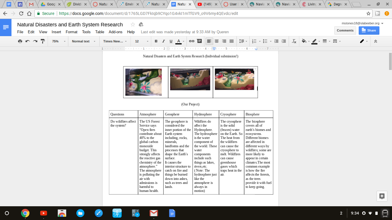 We realized since the atmospheres on earth are interlinked with one another sharing the same global systems. May contribute a cause on one atmosphere but affecting another For example , geosphere, biosphere, cryosphere and hydrosphere which we recently researched this project. Coming to a conclusion that one cause has the ability to affect different environments in various processes.