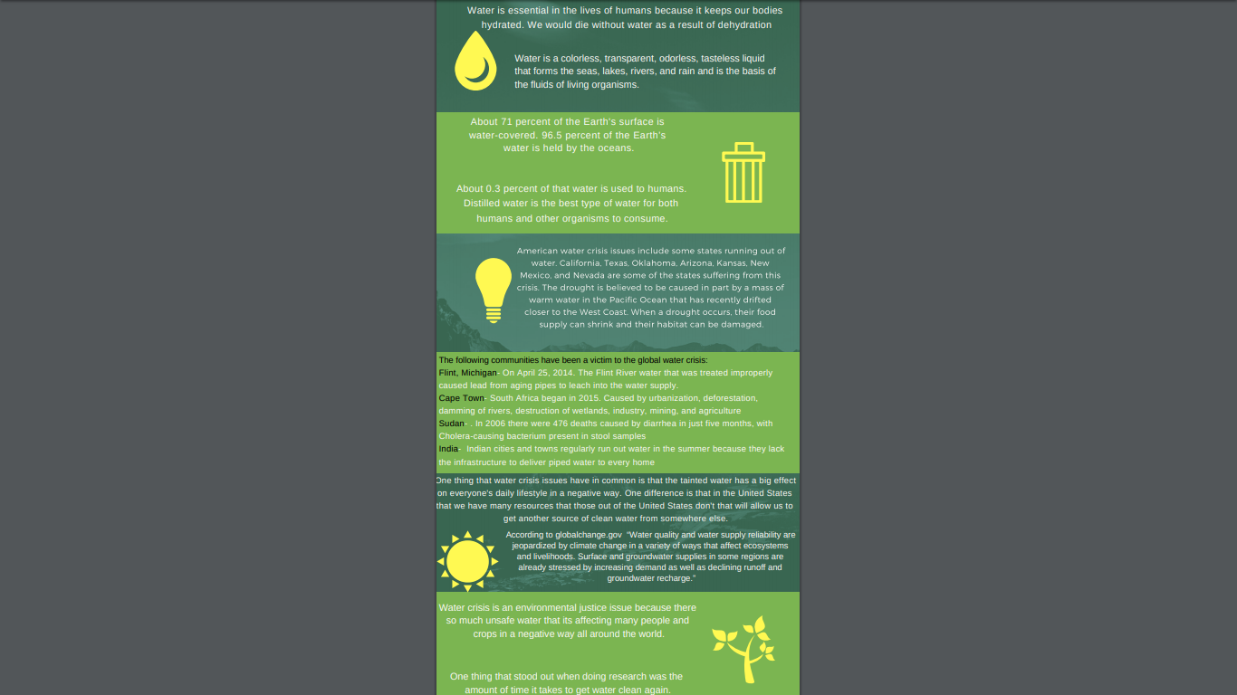 This is our info graphic which we talked about the issues surrounding water around the world.