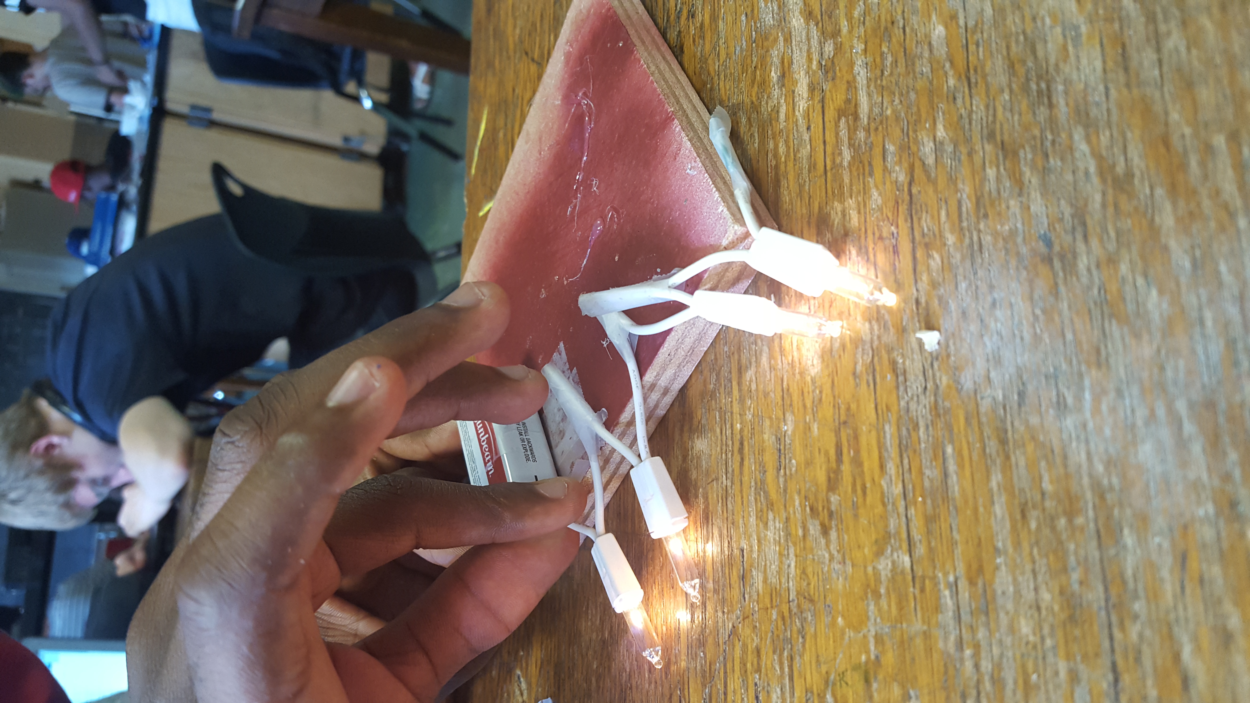 ​ARTIST STATEMENT:We made out project from wood.This is key because it shows who we are.Very simplistic.The best part about this piece is we painted the wood burgundy and red because of our mood.Adding lights just made the project look beauteous.