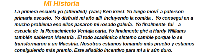 Yo han tenido tiempos difíciles en mi vida y Yo han tenido el opuesto. En mis 16 años de vida, Yo tengo consumado muchas cosas. Un ejemplo es haciendo un curriculum vitae. Tener un currículum vitae es una parte importante de éxito. Aunque yo tengo logros, yo quiero tener más exitoso.