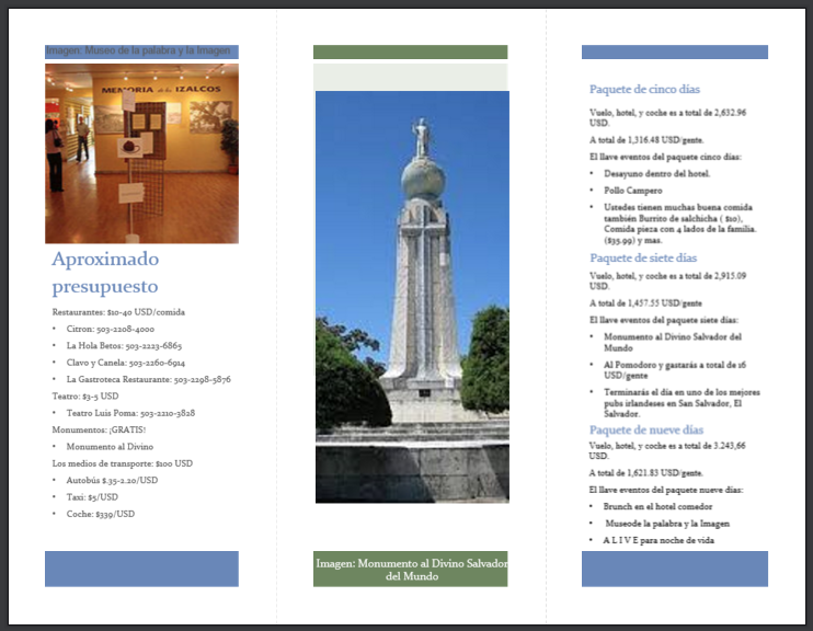 In this project we made a trip for 2 people to go through a certain amount of days. I think the project showed the our creativity because we had to pick a foreign place and give them ideas of thing for people to do . I think this project went well because I had to collaborate well with my group and I had to make sure the commercial was creative. It got me okay grade, but if I was to do this over I would work on time management.