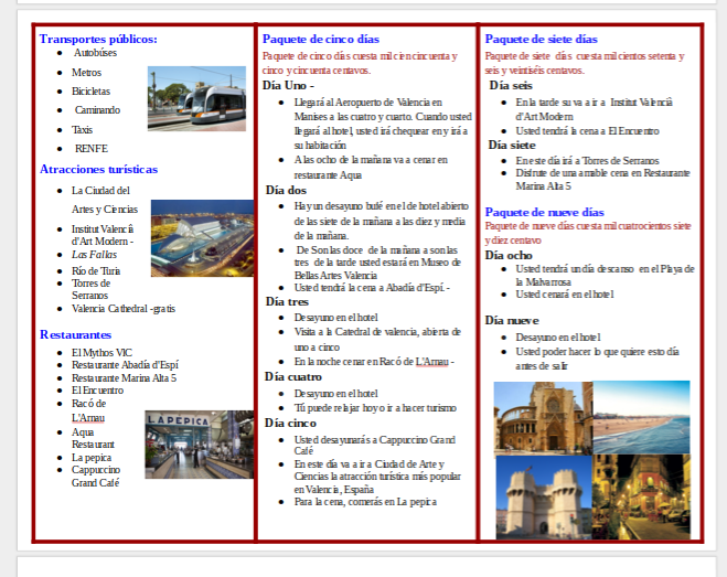 El Paquete A (Cinco día) *escoger y elegir Restaurante