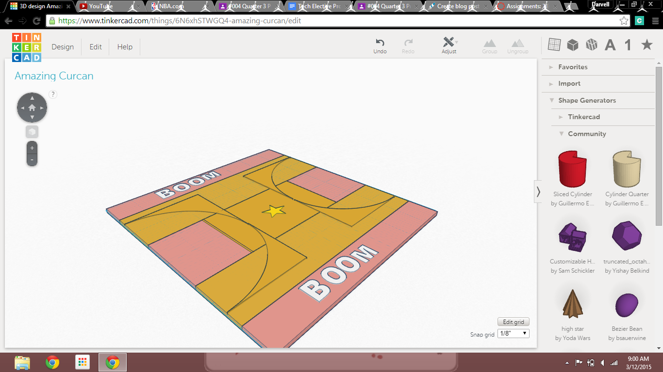 The hardest part of this project was getting the project to the printer so that I will be able to print it.